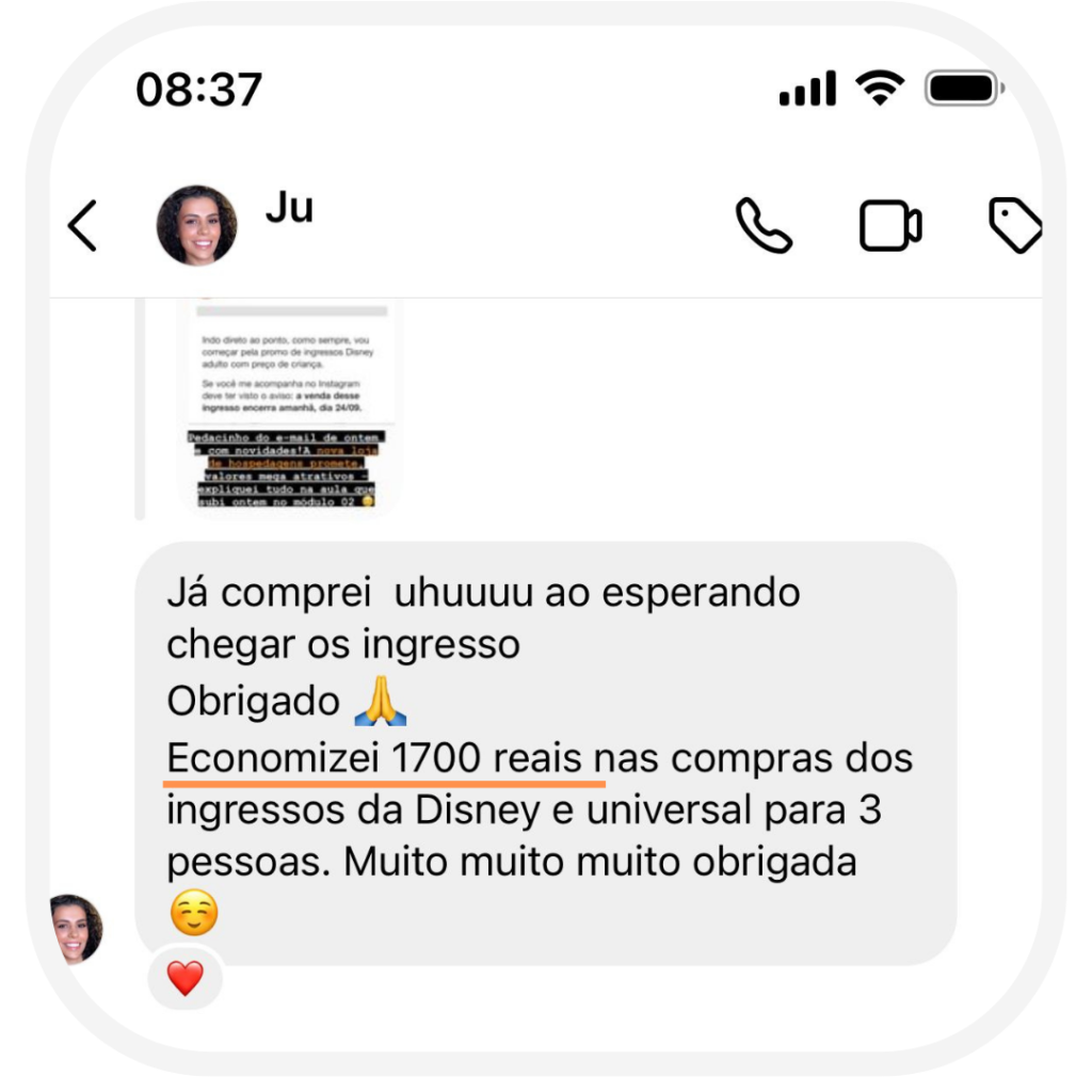 Mas, claro, você é livre para escolher o que acredita ser melhor (e mais cômodo!) para sua viagem 😊 e por isso aqui está uma indicação de serviço de guiamento remoto com um valor fixo fechado com a Jennifer, que é ex-cast member da Disney. Clique aqui para entrar em contato com ela pelo whatsapp